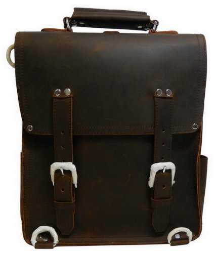14" Tall Full Leather Backpack Bag Tote L04 (a single shoulder strap) - Very Thick and Sturdy Leather Feature