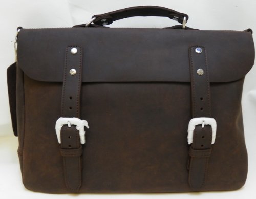 16" Fine Leather Light Messenger Laptop Case L52 (full leather shoulder strap) by