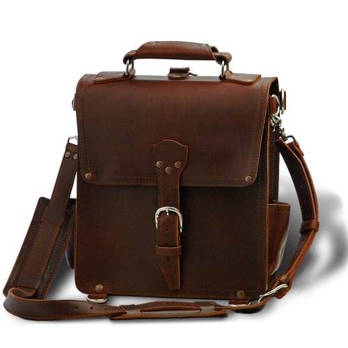 5 pockets: 2 narrow inner pockets 2 outer side pockets and 1 large back magazine pocket.Converts to backpack with multi-purpose removable shoulder strap.Hidden reinforcing nylon straps and stout rivets at all stress points.No zippers snaps buttons or any breakable parts. Just one simple center buckle.Tough and thick 4 to 5 oz. full grain leather sewn with the strongest thread we could find. Dimensions: Approx. 12.75" wide X 14" high X 3.9". Each Saddleback Leather piece is built with thick, tough to sew full grain leather with clean unfinished edges. Every work of leather is made by man not by automated machine. Because of that and the thickness, the seams and stitches aren't always precisely spaced, but they sure are strong. They are not perfect and that's what makes them perfect. Our craftsmen use the toughest thread around and stout rivets on all stress points. We refuse to use zippers, snaps or anything that'll eventually break. If you want a flawless mass produced pretty boy bag made for the masses, by the masses, your search is not over. You might find a small scar or two on your leather (which was the least of the bull's ill fortune). That's the beauty of full grain boot leather. These are handmade, to last longer and age better than you ever will. Buy the best, cry once.