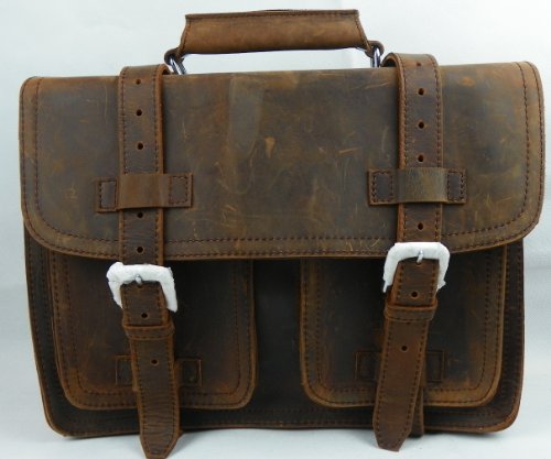 Very heavy duty leather bag for tough men/women. Time to say bye bye to plastic/painted/fake leather bags..Any custom concerns will be taken care of within 24 hours through email, except vacation, holiday and weekend.Oil & Wax tanned raw cowhide leather contains: scars, wrinkles, (might have) odor smell: unique character, durable and expensive..Dimensions: 15.5 * 11.5 * 7.5 Inches; weight:8-9LB; Strap Dimensions 37.5 - 67 Inches. A wise man once said that a journey of a thousand miles begins with a single step. Wherever your journey takes you-shouldn't it begin with a Vagabond Traveler Bag? Our goal at Vagabond Traveler is to provide unique, high quality bags at affordable prices. Each bag is handcrafted from the finest materials available and built to last for generations to come. The leather is lined with premium suede and cut into one of several unique and timeless patterns. The bag is expertly tanned to bring out its natural beauty and hand assembled by skilled artisans using thick nylon stitching. Stylish rivets and rings are added to reinforce potential points of extra stress and wear and functional nickel-plated buckles provide the finishing touch.