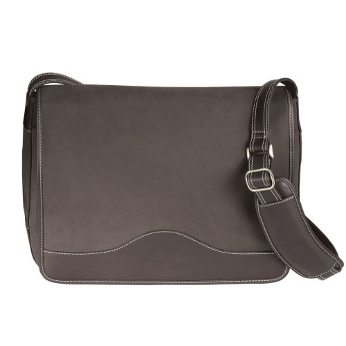 A zip pocket on the back.Open compartment features a zip pocket inside.A stunning mix of suede-like brushed twill and full-grain cowhide leather, trimmed with a creamy saddle stitch.Beneath the flap, you'll find loads of pockets, including a full-size open pocket for a PDA, phone, cards and pens..